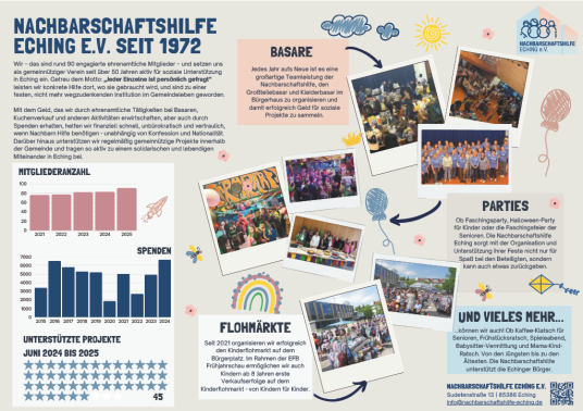 Darüber hinaus unterstützen wir regelmäßig gemeinnützige Projekte innerhalb der Gemeinde und tragen so aktiv zu einem solidarischen und lebendigen Miteinander in Eching bei.